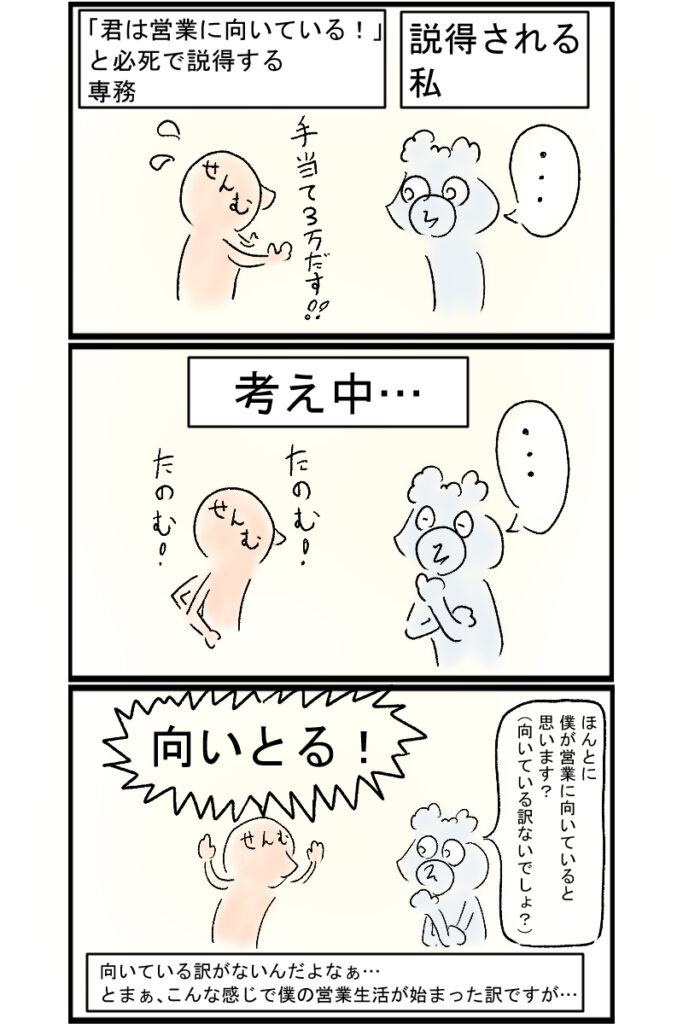そして営業へ・・・ X コピー 2025.09.19 手当3万に目がくらみ営業職に飛び込んだ私の運命はいかに!? そもそも豆腐メンタルだし! (前任者が逃げ出している時点で嫌な予感しかしませんねぇっ!!)