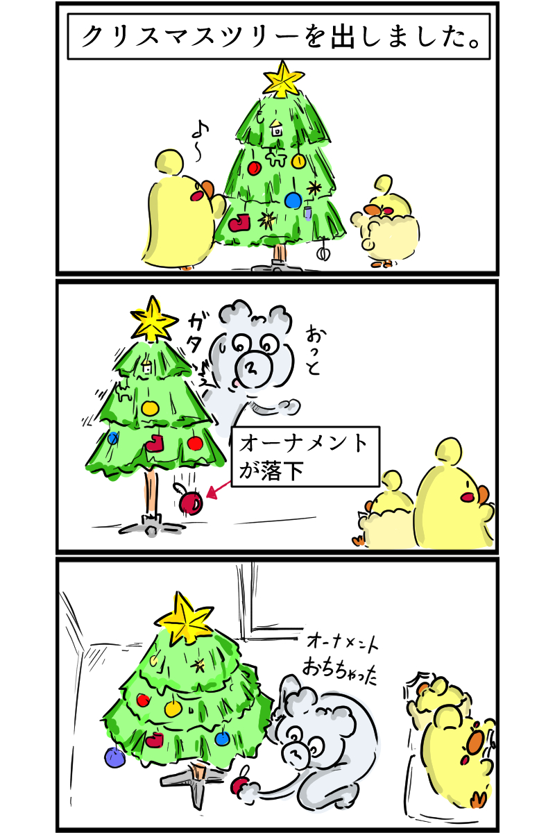 オーナメントが落下した拍子に、なぜかダジャレがひらめく私。
