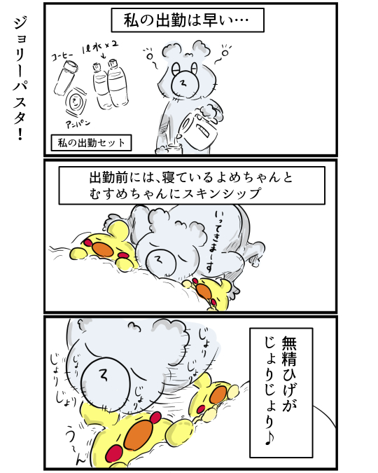 出勤前、かわいいよめちゃんとむすめちゃんにスキンシップ。
