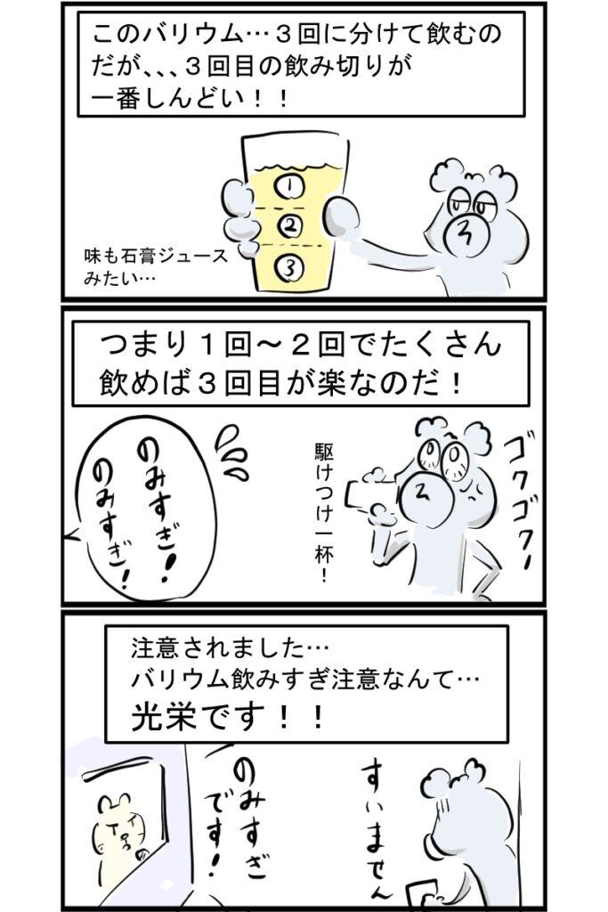 採血とかは平気な人もいると思いますが、バリウムを平気な人はマジでいないんじゃないですかね…