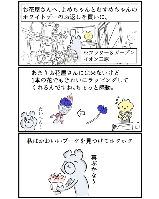 よめちゃんとむすめちゃんへのお返しに、お花屋さんへ行きました!