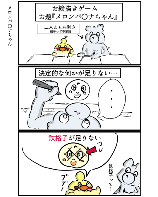 メロンパンナちゃん!! X 2026.01.23 メロンパンナちゃんが描けない! 決定的に何かが足りない…なんだっけ…? すると、むすめちゃんが一言。「鉄格子が足りないよ」 いやいや、あんな可愛いメロンパンナちゃんの顔に鉄格子ははまっとらんわ!!