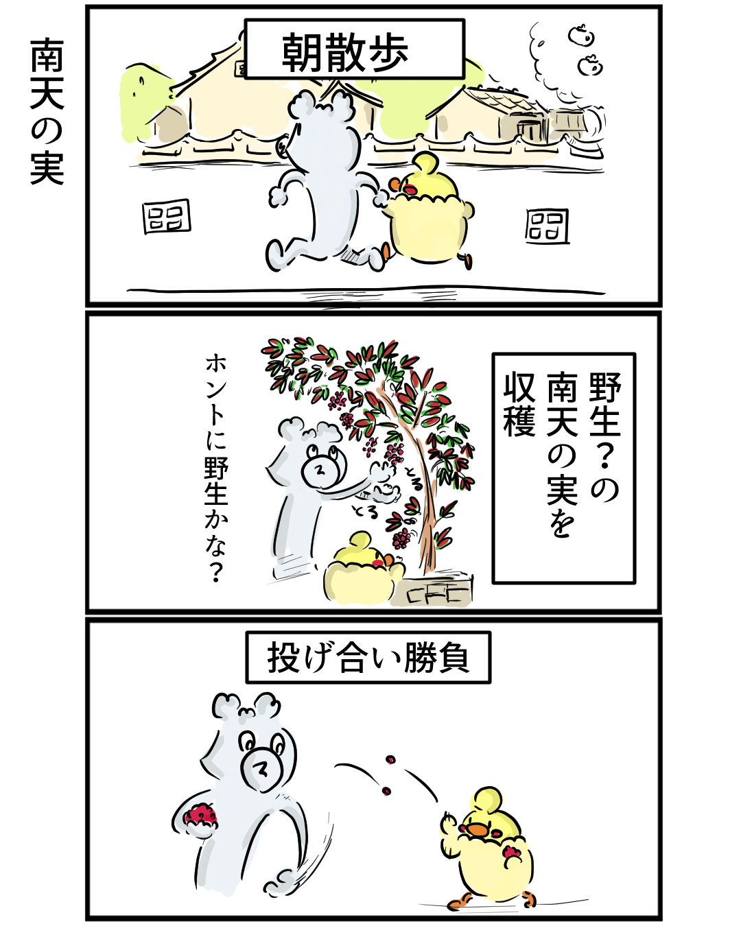 この南天の実、むすめちゃんとの投げ合い勝負が恒例。